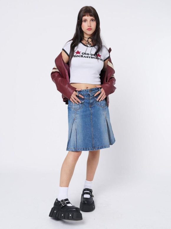 Patrícia wears size 26″ and is 165 cm | 5’4″ tall