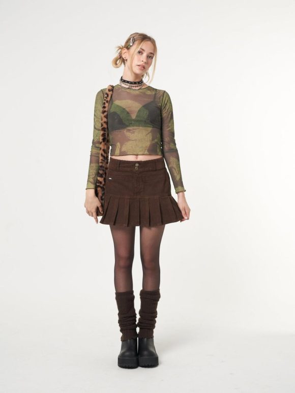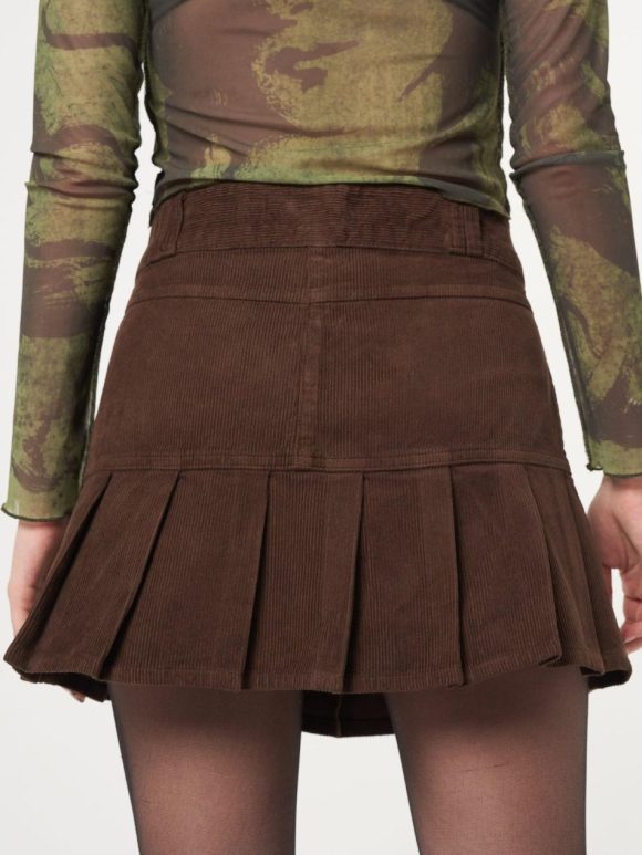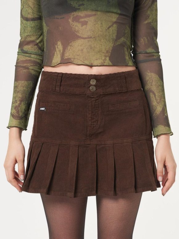 Women Minga London Bottoms | Brown Corduroy Pleated Mini Skirt