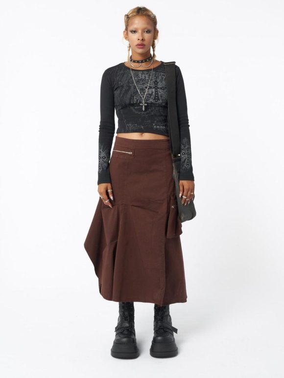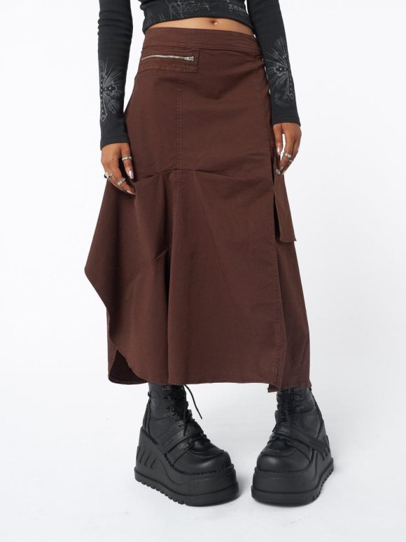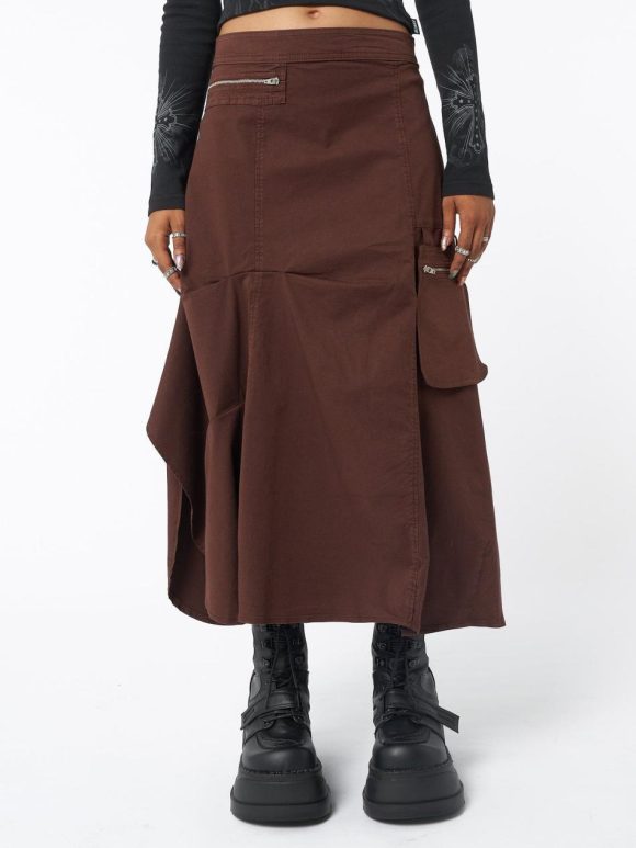 - Maxi tech cargo skirt in chocolate brown