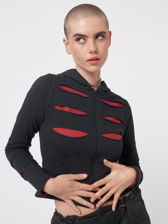 - Slash zip up hoodie jacket in black