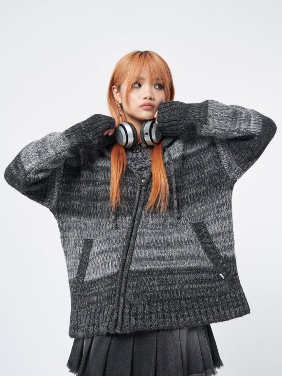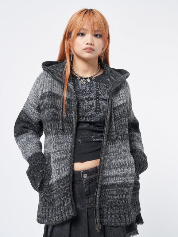 Women Minga London Jackets & Cardigans | Oyster Zip Up Hood Knit Cardigan