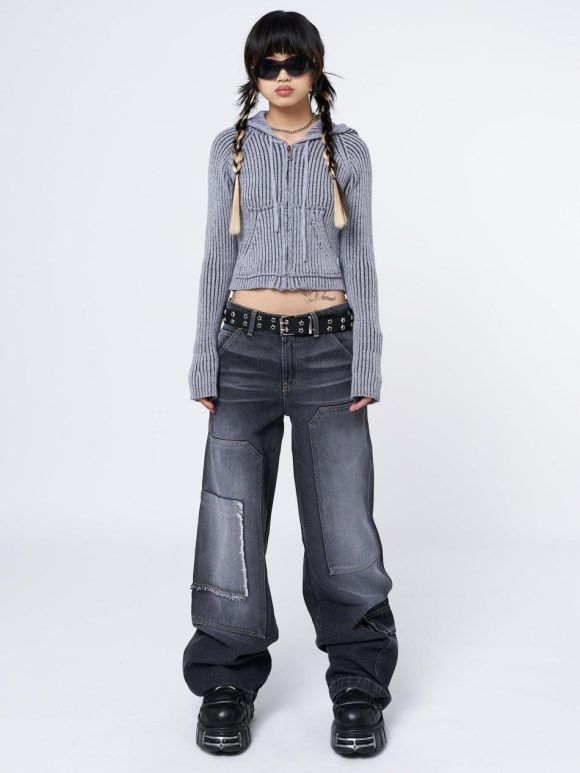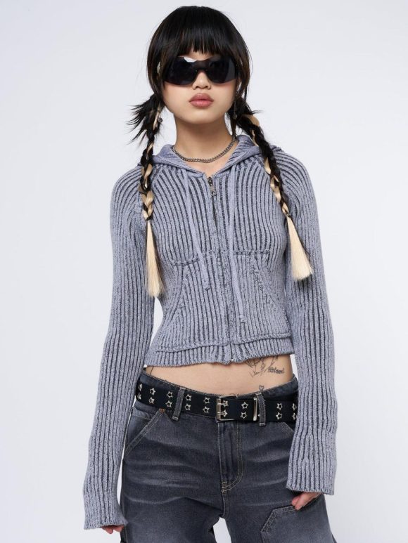 Women Minga London Jackets & Cardigans | Stained Grey Zip Up Hoodie