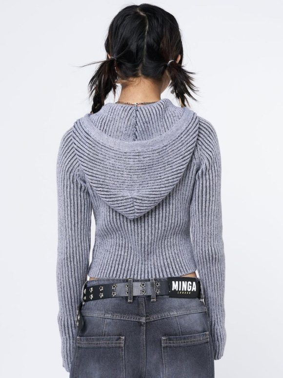 Women Minga London Jackets & Cardigans | Oyster Zip Up Hood Knit Cardigan