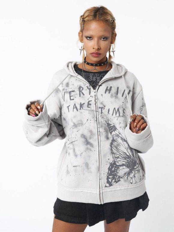 Women Minga London Jackets & Cardigans | Minga Logo Zip Up Hoodie In Blue Grey