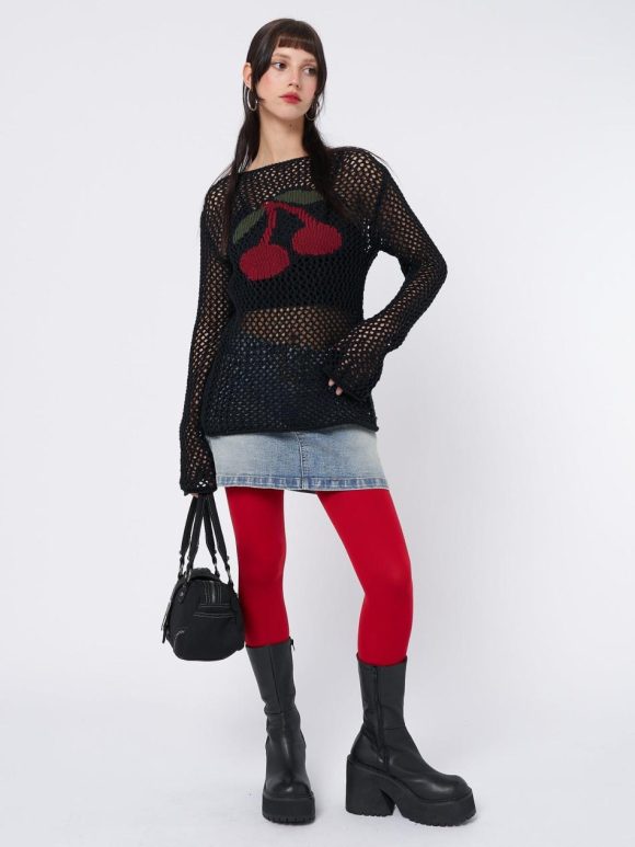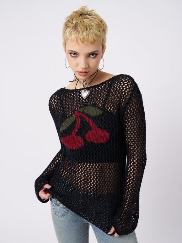 Women Minga London Knitwear | Cerise Open Knit Jumper