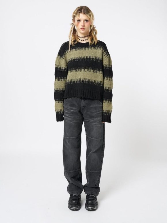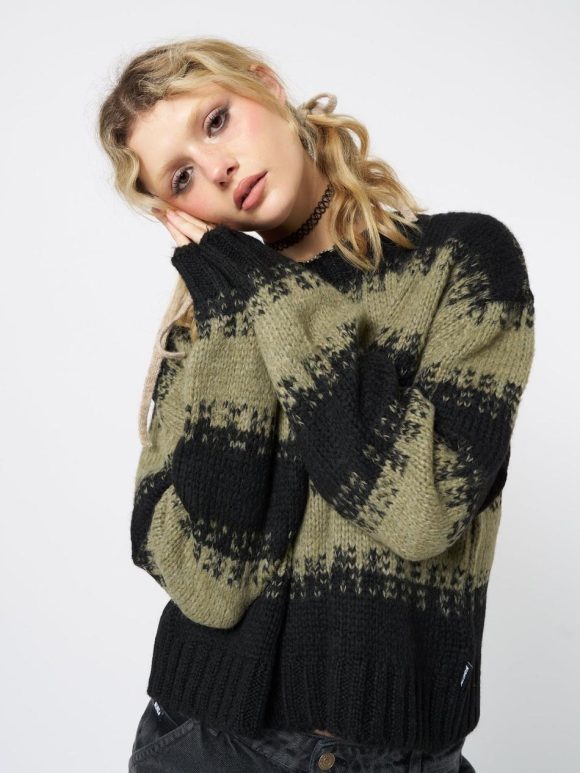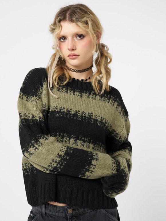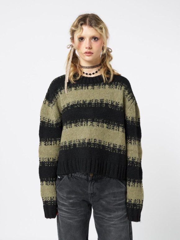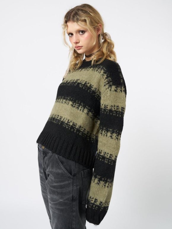 Women Minga London Knitwear | Clara Green Cropped Striped Knit Sweater