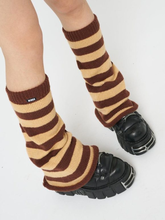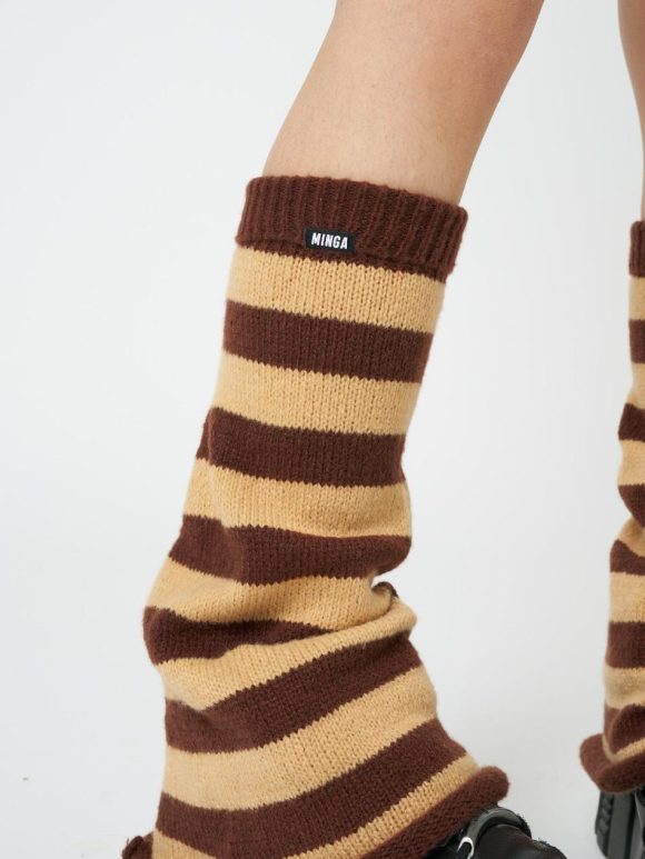 Women Minga London Shop All | Brown & Honey Striped Flare Leg Warmers