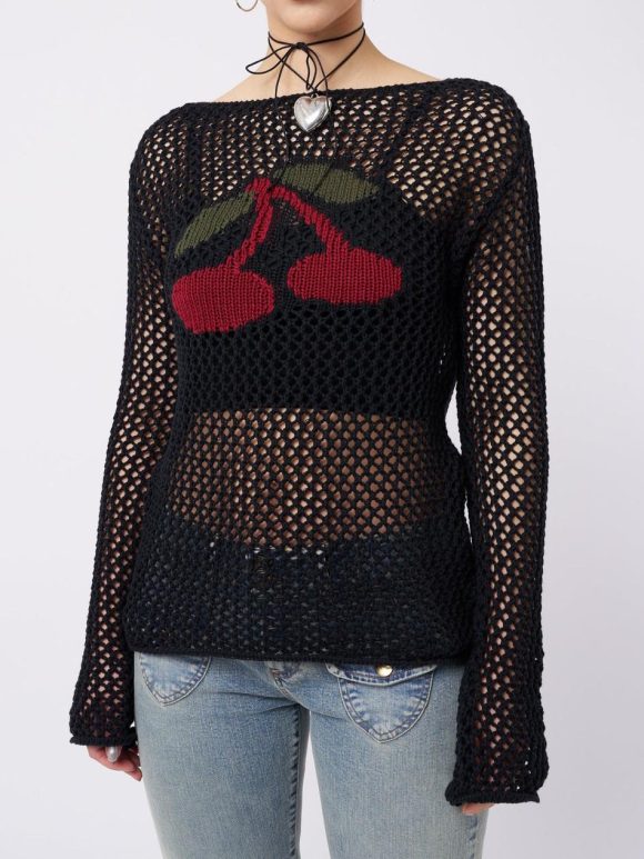 - Open knit jumper in black