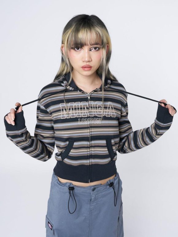 Women Minga London Sweaters & Hoodies | Deba Striped Zip Up Hoodie