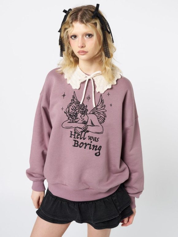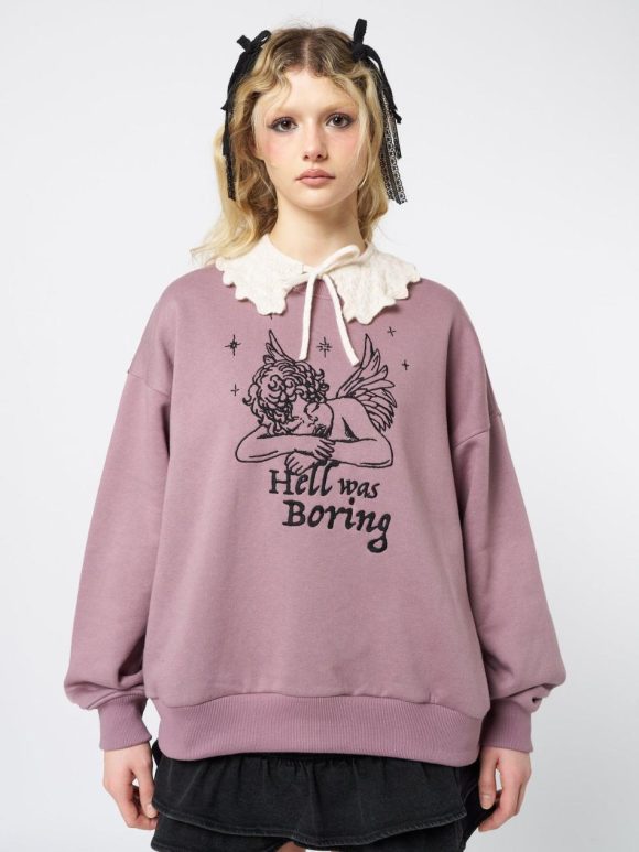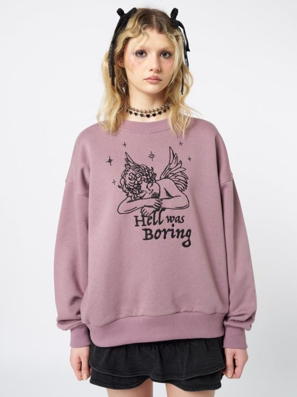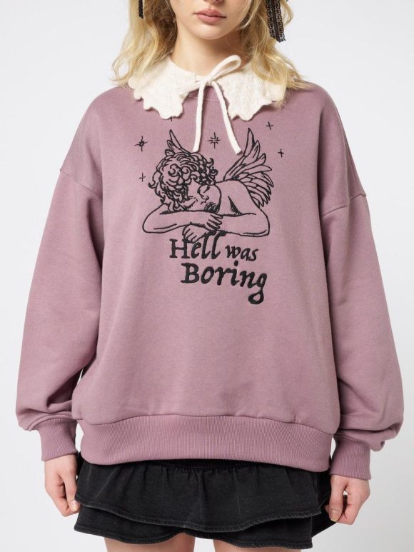 - “Hell was boring” angel embroidery