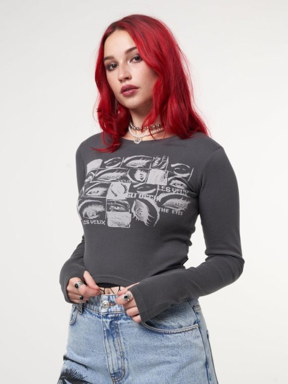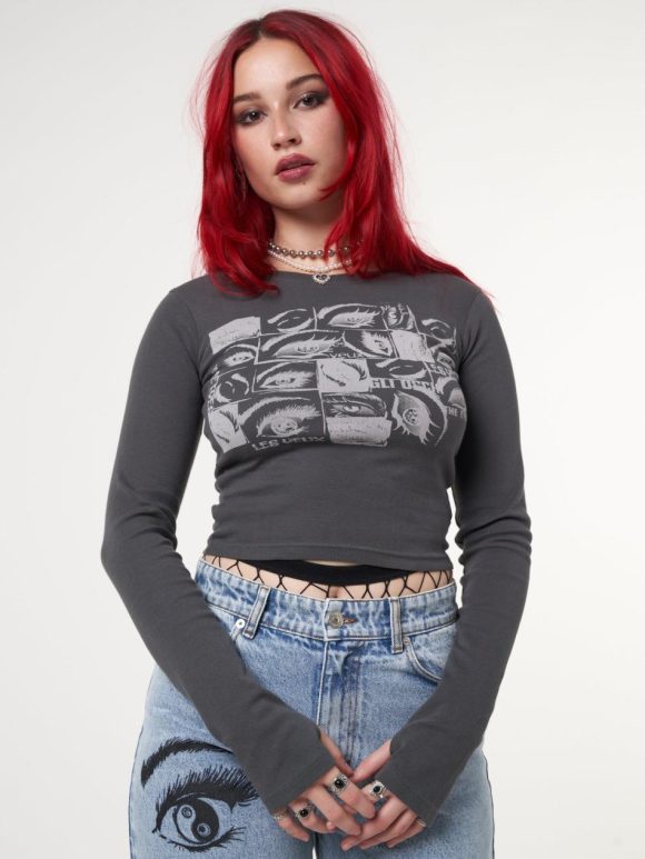 Women Minga London Tops & T-Shirts | Mirror Eyes Mesh Crop Top