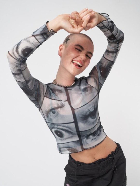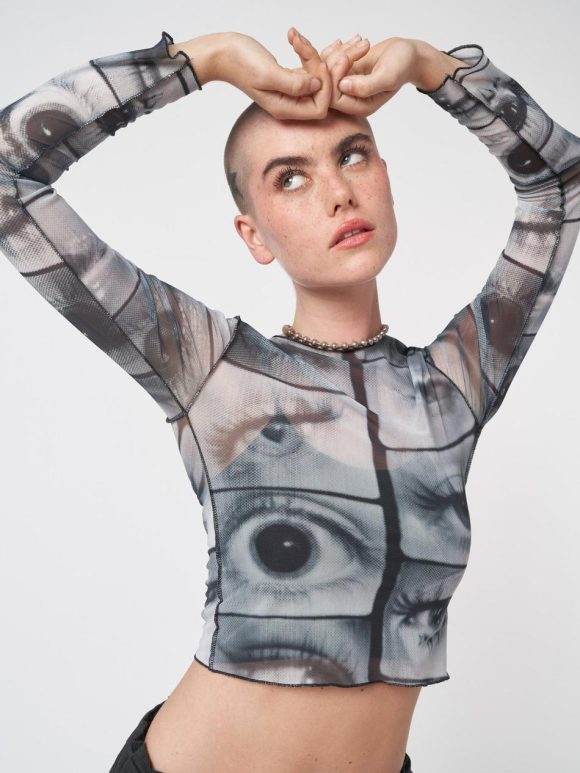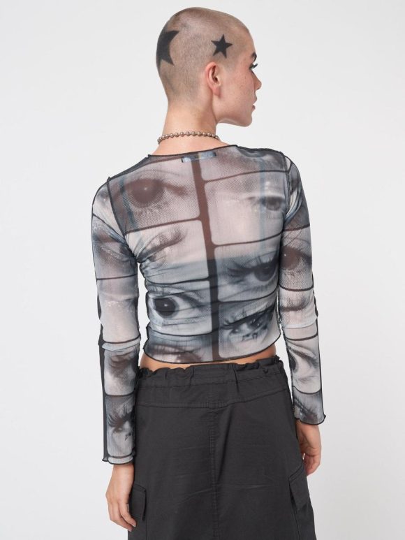 Women Minga London Tops & T-Shirts | Mirror Eyes Mesh Crop Top