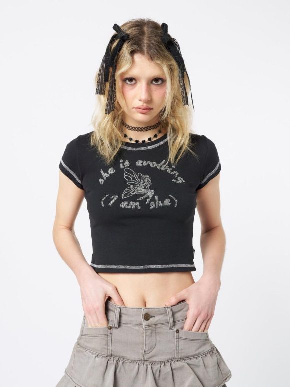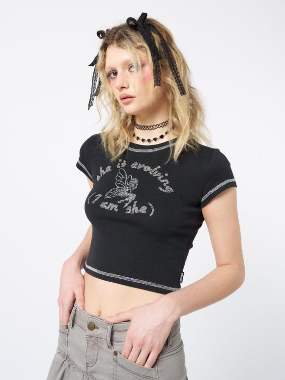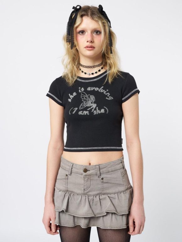 - Graphic baby tee in black