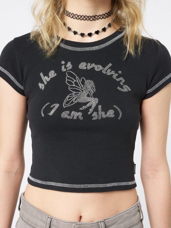 - “She Is Evolving” fairy front with rhinestones