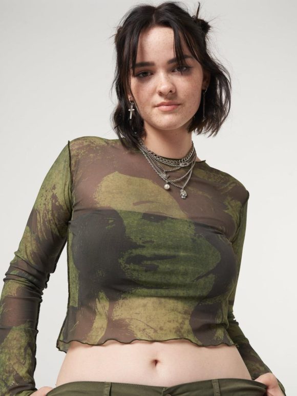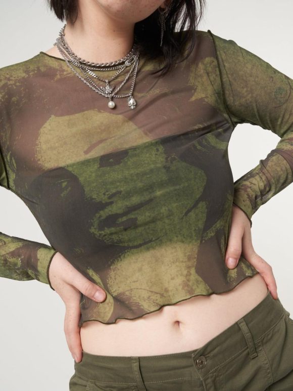 Women Minga London Tops & T-Shirts | Mirror Eyes Mesh Crop Top